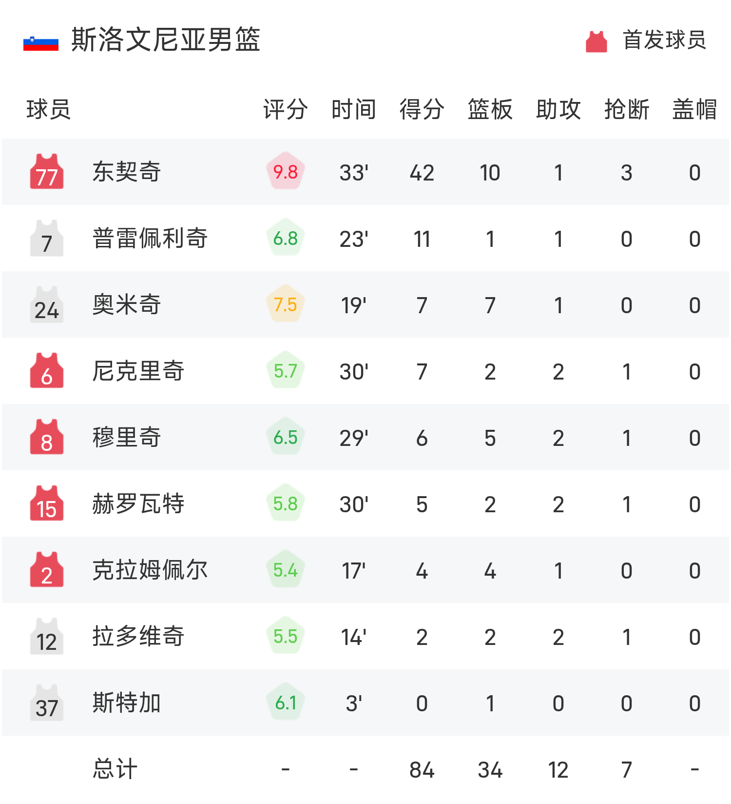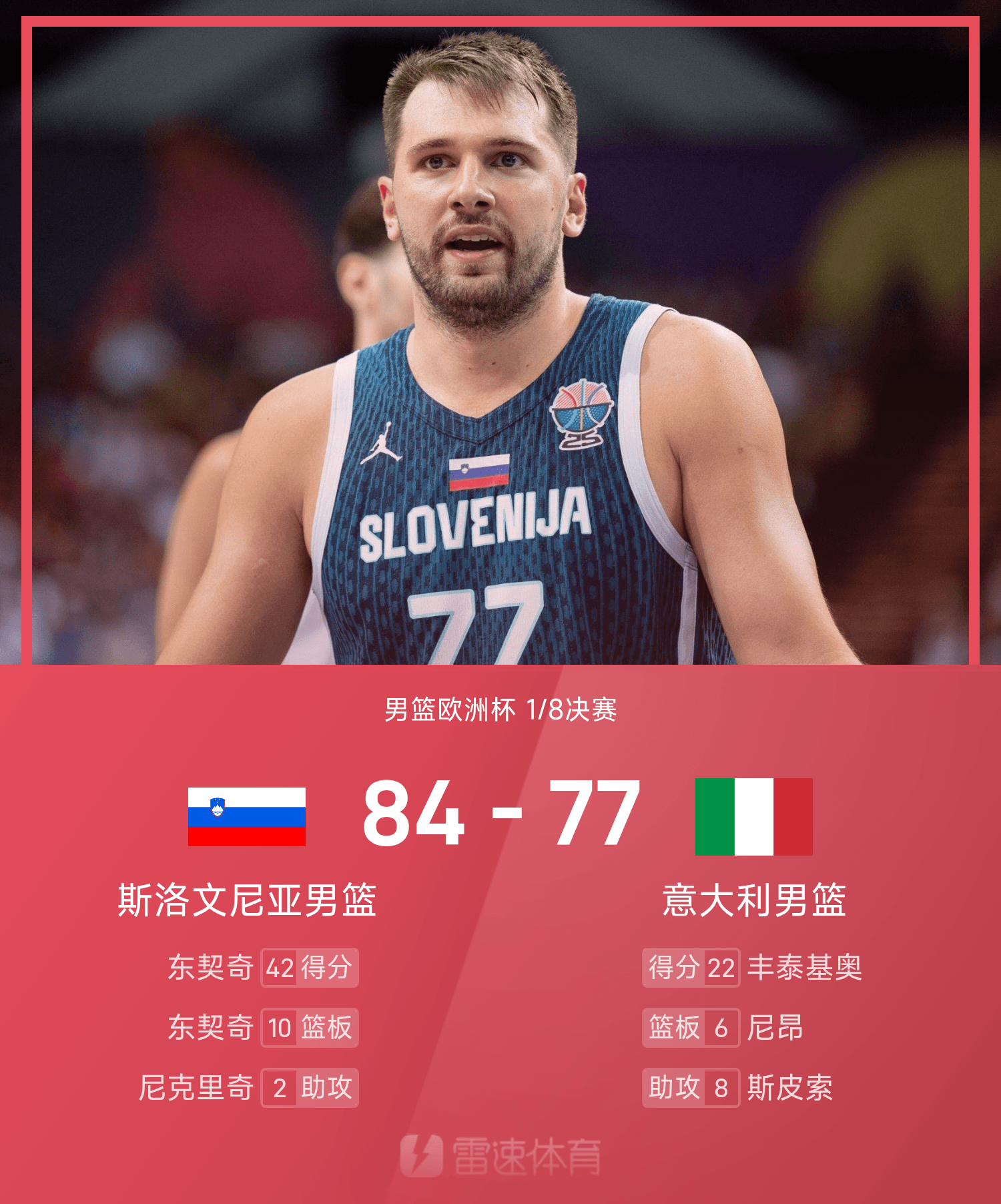 B体育-男篮欧洲杯战报:东契奇爆轰42分,斯洛文尼亚84-77意大利